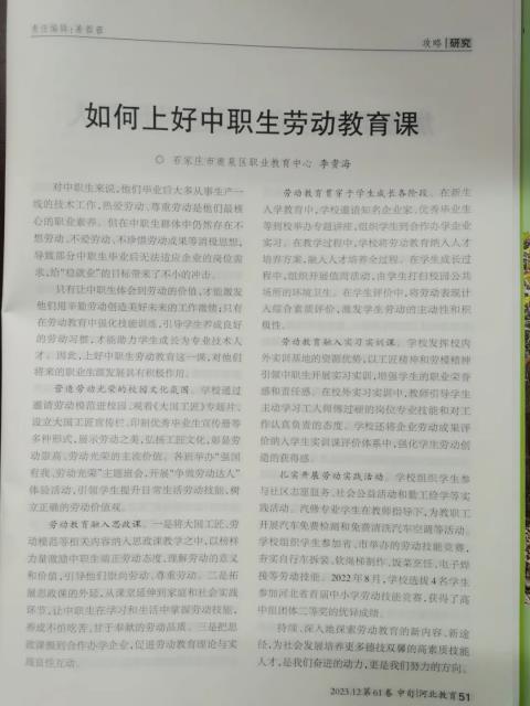 持续、深入地探索劳动教育的新内容、新途径,为社会发展培养更多德技双馨的高素质技能人才,是我们奋进的动力,更是我们努力的方向。